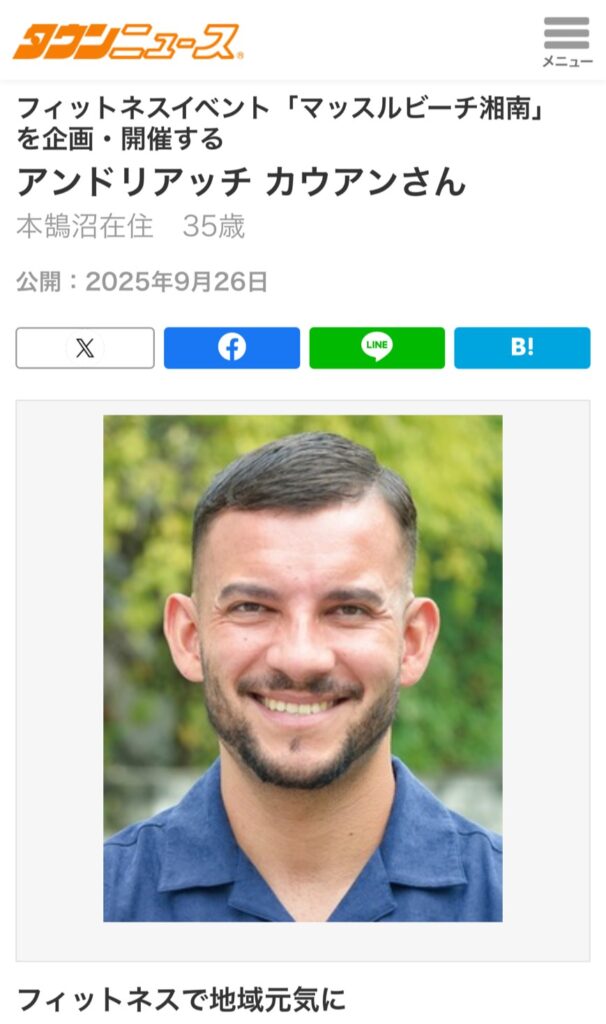 WEB版タウンニュース茅ヶ崎・寒川、藤沢版、そして地域密着メディア「#ちがすき」に、 湘南エリアの活性化を牽引する代表のアンドリアッチが紹介されました!